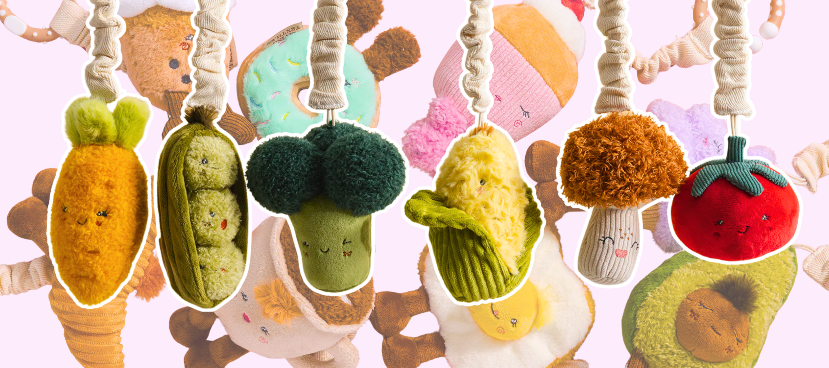 Living Textiles - Avocado & Egg on Toast Mini Market Brunch Play Gym + Stroller Toys - 2 Pack